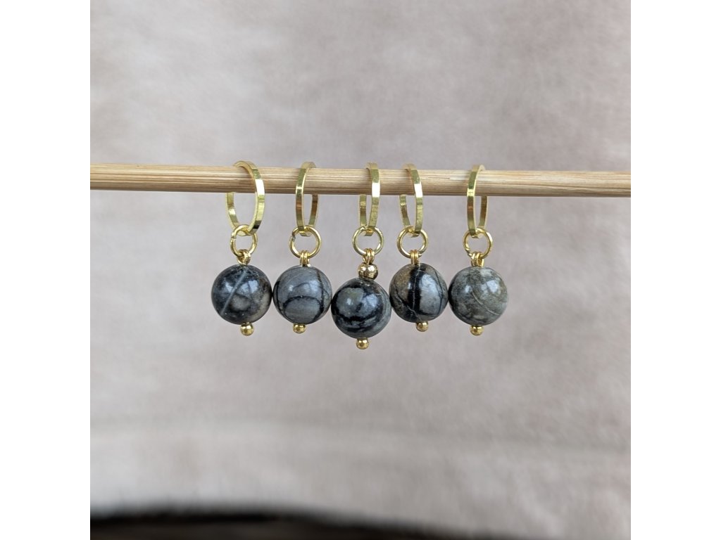 Značkovač z přírodních drahých kamenů a minerálů je skvělou pomůckou při pletení. Značkovače mají uzavřený zlatý kroužek, v práci se tedy nezadrhávají a pletení je plynulé.