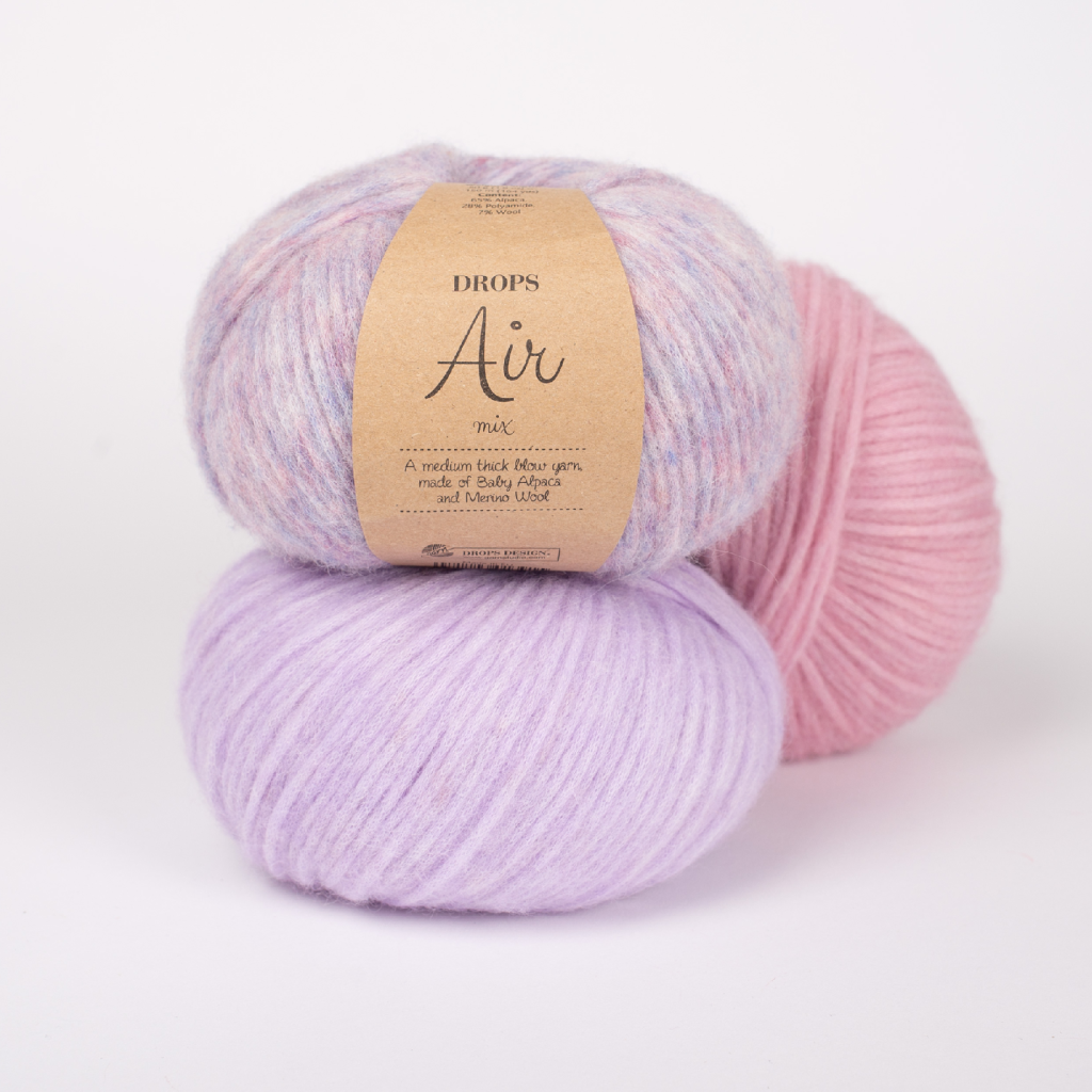 Příze DROPS Air je lehoučká, velmi vzdušná, jemná i při styku s holou pokožkou - sáhněte po ní, chcete-li plést či háčkovat doplňky, šály, šátky, svetry či kabátky, a to jak plastickými, tak copánkovými vzory.