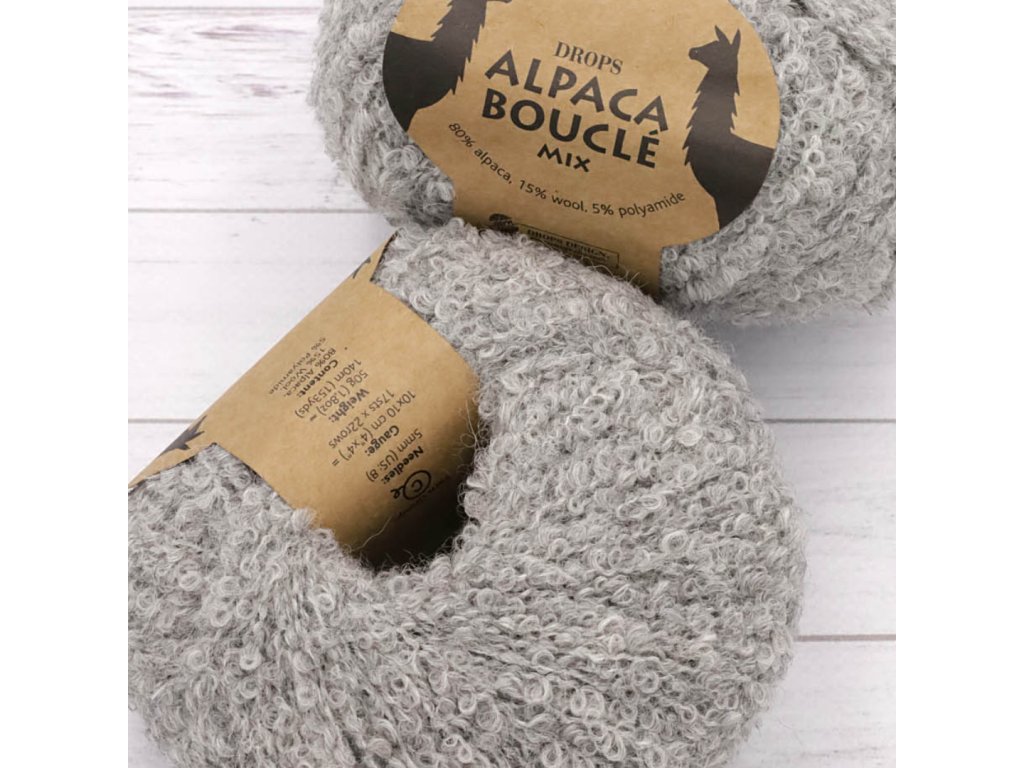 DROPS Alpaca Bouclé je krásná efektní příze skaná ze 2 vláken z jemňoučké srsti peruánských lam. Středové vlákno je tvořeno směsí vlny a polyamidu - díky tomu je velmi pevná. Alpaková srst není nijak upravována: před vlastním barvením neprochází žádnou formou chemického ošetření, pouze běžným praním. Tak jsou zvýrazněny přirozené vlastnosti vlákna a navíc mu takový postup dodává lepší tvar i strukturu. “Bouclé” je francouzský výraz pro “kadeře” a odkazuje k množství drobných smyček čisté alpaky, jimiž je tvořeno každé klubíčko této výjimečně měkké příze. Úplety z ní jsou nádherně lehoučké a nadýchané.