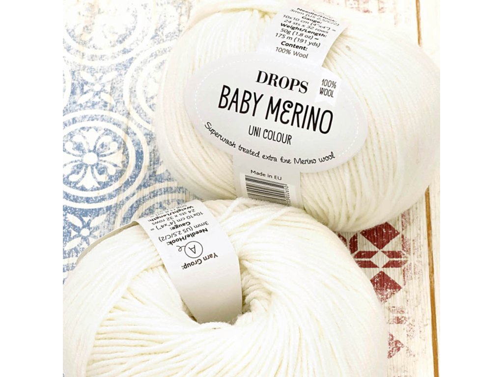 DROPS Baby Merino je skána z jemných vláken 100% merino vlny, která je extra jemná, prodyšná a nedráždivá - ideální pro citlivou pokožku miminek a malých dětí. Vlákno příze pěkně vykresluje oka i vzorky, a výsledkem je úhledný, velmi pružný úplet. Výjimečná pružnost příze klade zvláštní nároky na správné zpracování úpletu: dbáme na to, abychom dodrželi hustotu zkušebního vzorku - raději volíme hustší (tj. pleteme na tenčích jehlicích), než volnější.