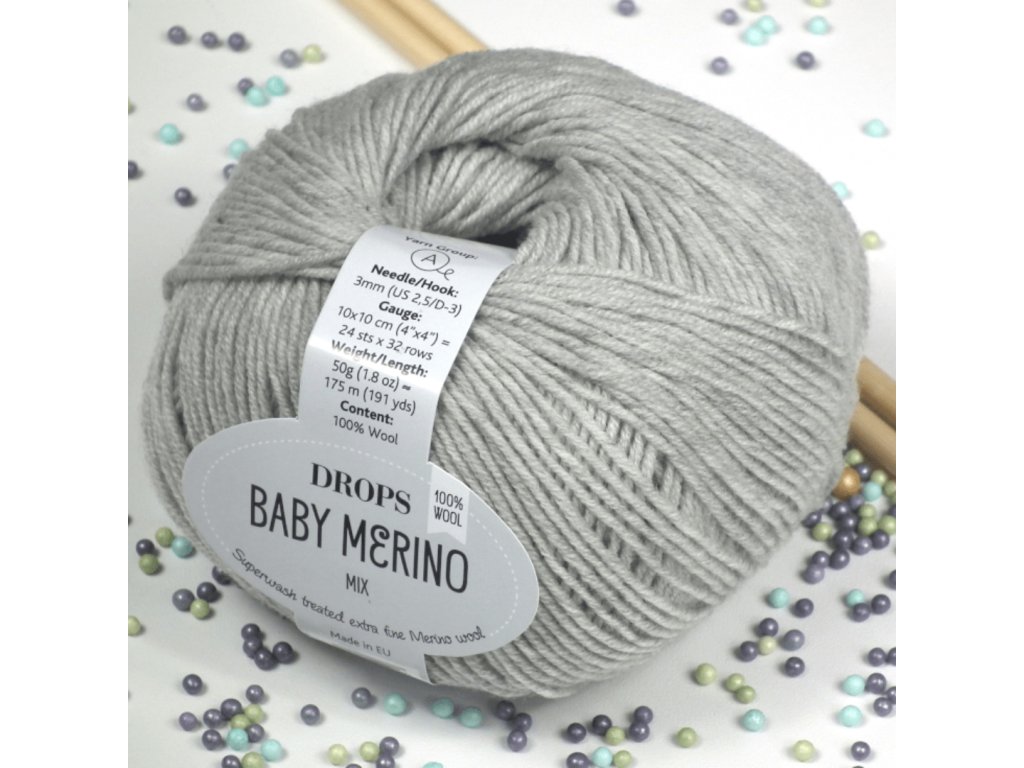 DROPS Baby Merino je skána z jemných vláken 100% merino vlny, která je extra jemná, prodyšná a nedráždivá - ideální pro citlivou pokožku miminek a malých dětí. Vlákno příze pěkně vykresluje oka i vzorky, a výsledkem je úhledný, velmi pružný úplet. Výjimečná pružnost příze klade zvláštní nároky na správné zpracování úpletu: dbáme na to, abychom dodrželi hustotu zkušebního vzorku - raději volíme hustší (tj. pleteme na tenčích jehlicích), než volnější.