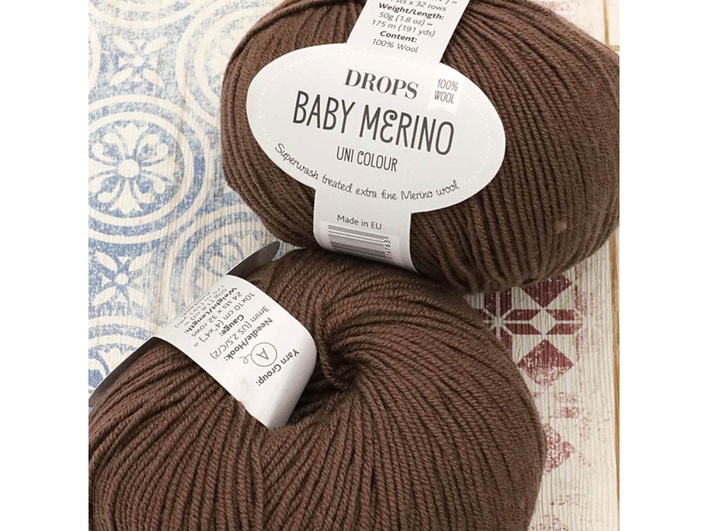 DROPS Baby Merino je skána z jemných vláken 100% merino vlny, která je extra jemná, prodyšná a nedráždivá - ideální pro citlivou pokožku miminek a malých dětí. Vlákno příze pěkně vykresluje oka i vzorky, a výsledkem je úhledný, velmi pružný úplet. Výjimečná pružnost příze klade zvláštní nároky na správné zpracování úpletu: dbáme na to, abychom dodrželi hustotu zkušebního vzorku - raději volíme hustší (tj. pleteme na tenčích jehlicích), než volnější.