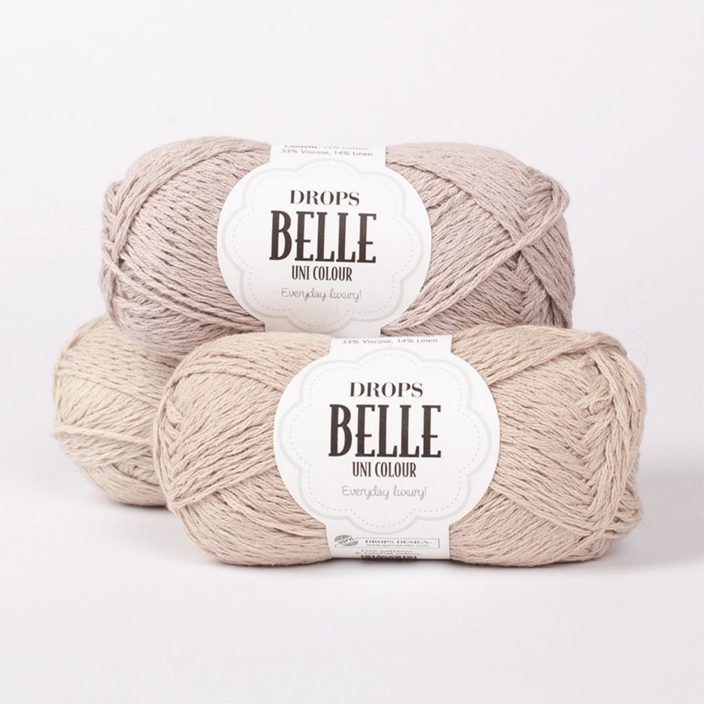 Přízi DROPS Belle tvoří nádherná směs bavlny, viskózy a lnu, která ji předurčuje k celoročnímu využití. Příze je prodyšná, má jemnou strukturu i lesk a je velmi příjemná při styku s pokožkou - je určena pro modely nošené přímo na těle!