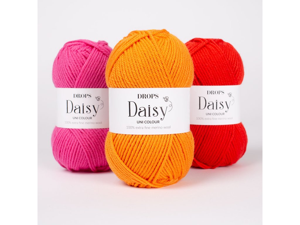Příze DROPS Daisy je seskána ze 4 pramenů, které dodávají přízi mimořádnou pružnost, a vytváří pěkně vykreslená oka, obzvláště vhodná pro copánkové, strukturální a perličkové vzory. Tato příze se skvěle hodí na modely původně navržené z přízí DROPS Karisma, DROPS Lima, DROPS Cotton Merino a DROPS Merino Extra Fine (tedy ze Skupiny přízí B).