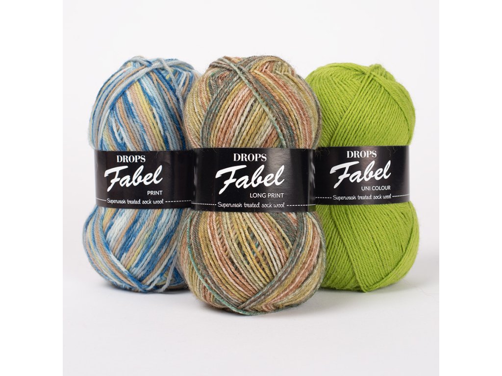 DROPS Fabel – tak odolná, jak může být jen ponožková příze! 4vláknová příze spřádána z jemné vlny ošetřené úpravou superwash – díky tomu lze výrobky z ní snadno udržovat a můžete je prát v pračce. Výsledné vlákno je krásně kulaté a tak příjemné, že přízi lze použít mnohem všestranněji než jen k pletení ponožek. Vyzkoušejte ji při pletení některého z modelů pro miminka či malé děti!