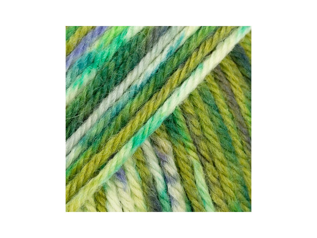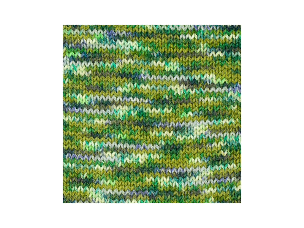 Pletené vzorky v barevnici ukazují barevné přechody, které můžete očekávat při pletení malého počtu ok, například u ponožek; u širších dílů může barevný gradient vypadat jinak - vzorování této příze se tedy liší podle různé šířky úpletu.