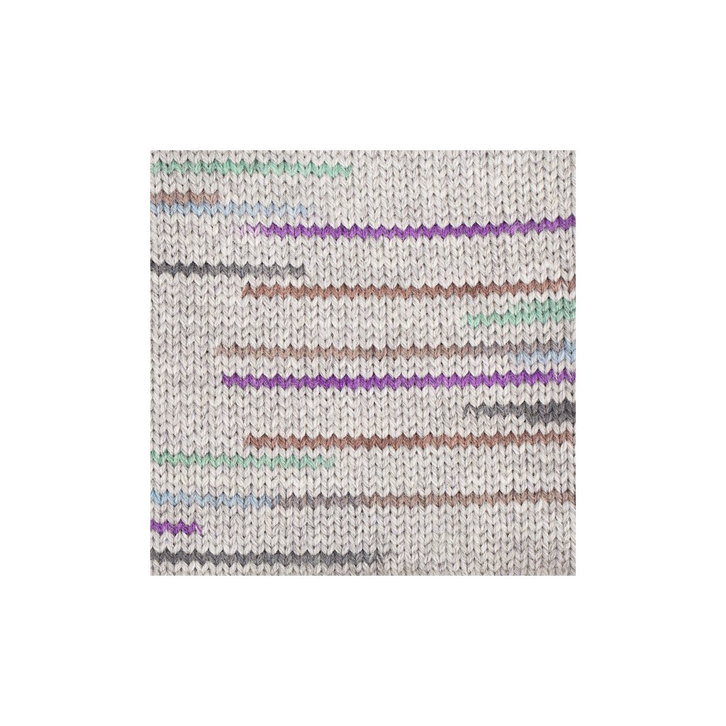 Pletené vzorky v barevnici ukazují barevné přechody, které můžete očekávat při pletení malého počtu ok, například u ponožek; u širších dílů může barevný gradient vypadat jinak - vzorování této příze se tedy liší podle různé šířky úpletu.