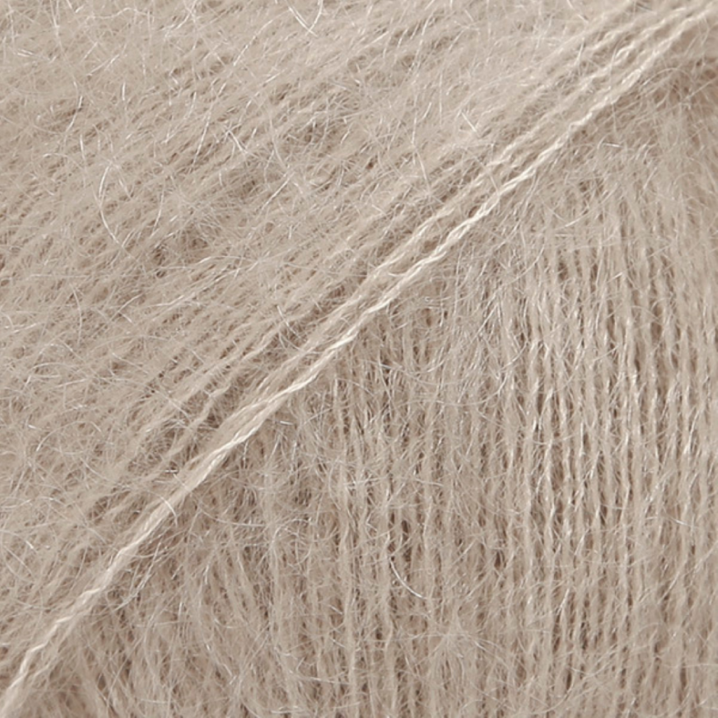 Luxusní, vzdušná počesaná příze je exkluzivní směsí 75% super kid mohéru a 25% morušového hedvábí. Příze DROPS Kid-Silk je lehká jako pírko a hotovému výrobku propůjčuje dokonalý, sofistikovaný vzhled, ať už je použita samostatně nebo v kombinaci s jinými přízemi.