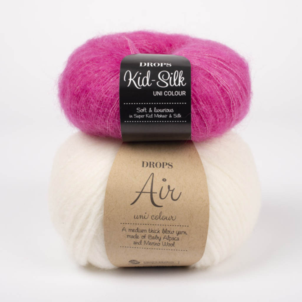 Luxusní, vzdušná počesaná příze je exkluzivní směsí 75% super kid mohéru a 25% morušového hedvábí. Příze DROPS Kid-Silk je lehká jako pírko a hotovému výrobku propůjčuje dokonalý, sofistikovaný vzhled, ať už je použita samostatně nebo v kombinaci s jinými přízemi.