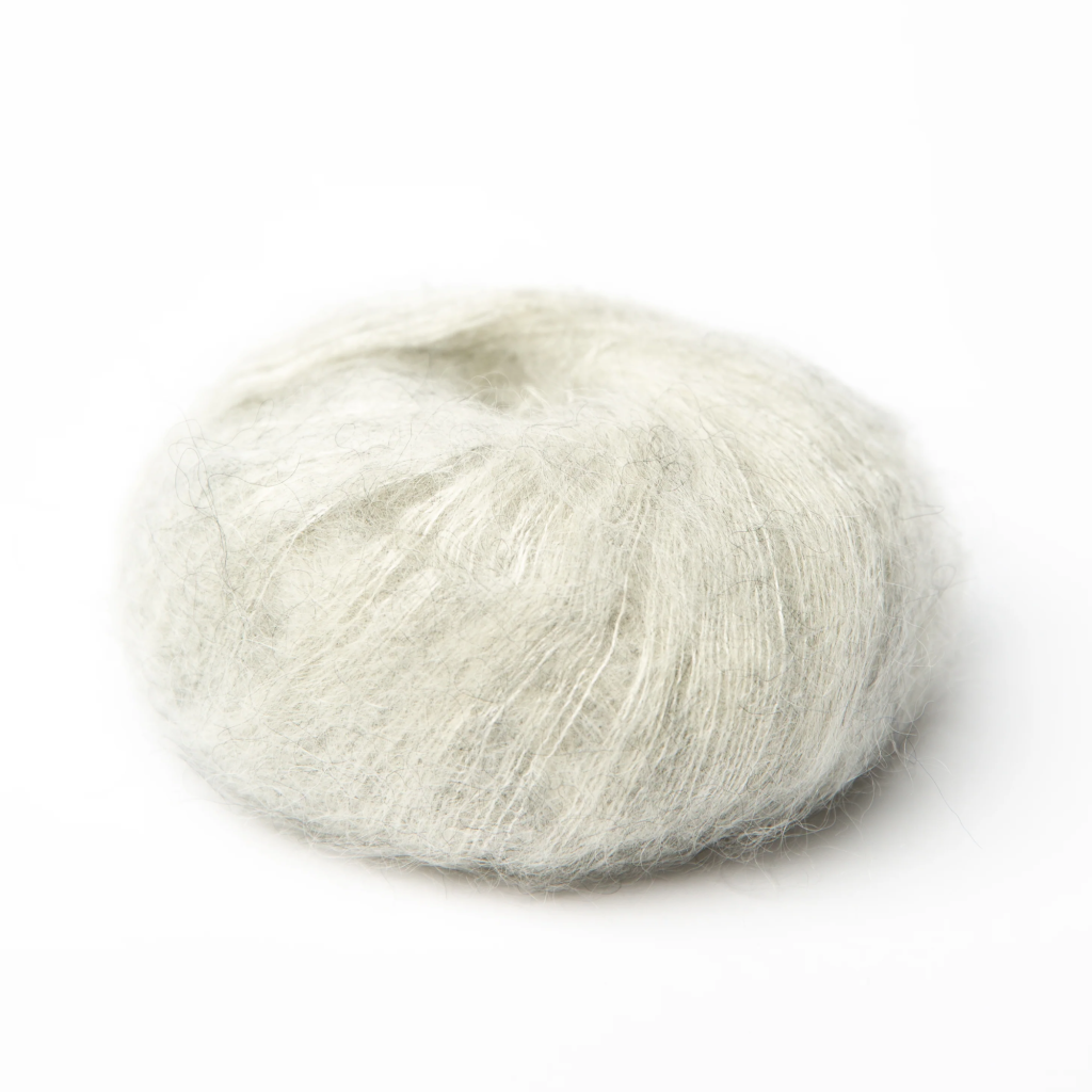 Luxusní, vzdušná počesaná příze je exkluzivní směsí 75% super kid mohéru a 25% morušového hedvábí. Příze DROPS Kid-Silk je lehká jako pírko a hotovému výrobku propůjčuje dokonalý, sofistikovaný vzhled, ať už je použita samostatně nebo v kombinaci s jinými přízemi.