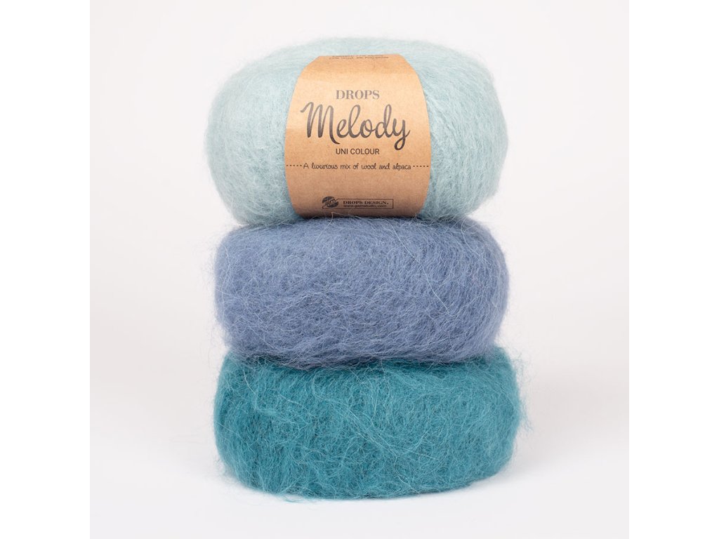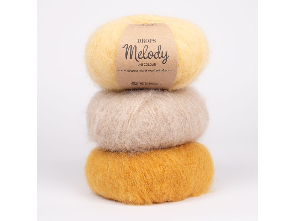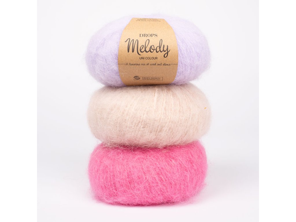 DROPS Melody je luxusní měkká příze tvořená velejemnou alpakou a merino vlnou. Hřeje a zároveň vypadá jako mohér. Je skvělou volbou pro modely z přízí skupiny D a ideální náhrada za již ukončenou přízi DROPS Vienna.