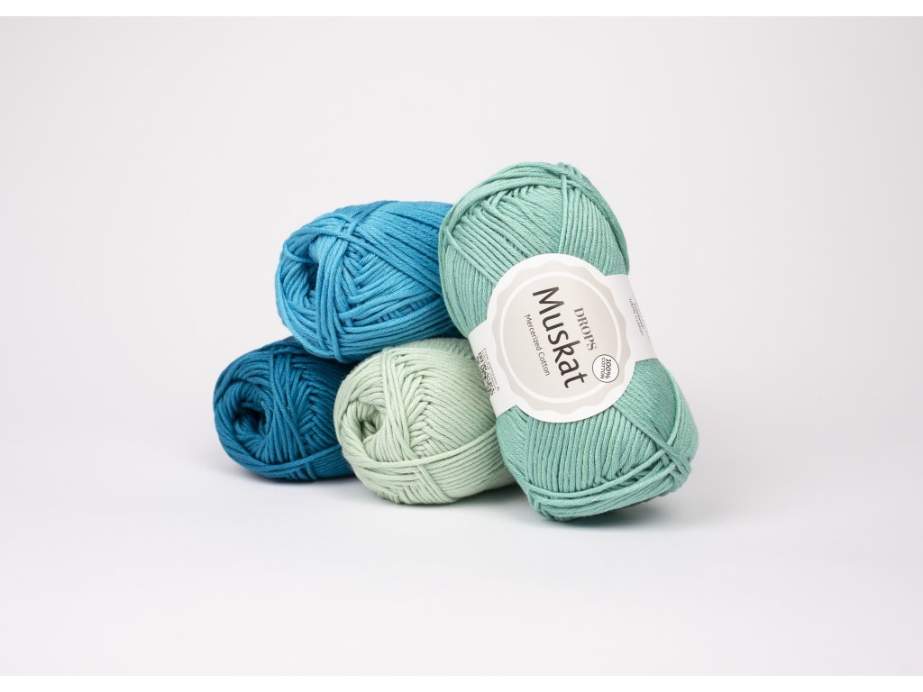 Příze DROPS Muskat je skána z mnoha dlouhých jemných bavlníkových vláken a prochází mercerací, tedy máčením ve studené lázni s přídavkem louhu, během níž je vlákno opakovaně napínáno a smršťováno, takže výsledkem je krásně lesklá, vysoce odolná a pevná příze s kruhovým průměrem a skvělou tvarovou stabilitou.