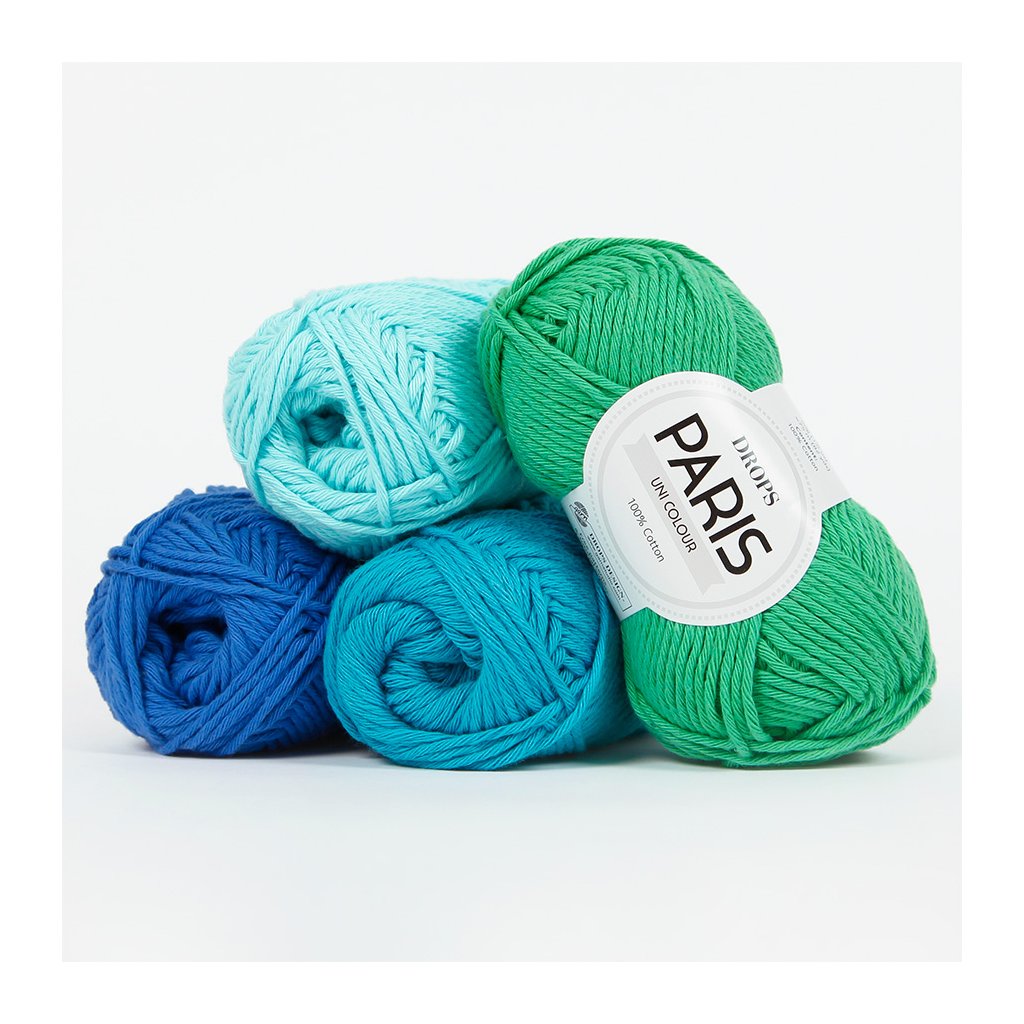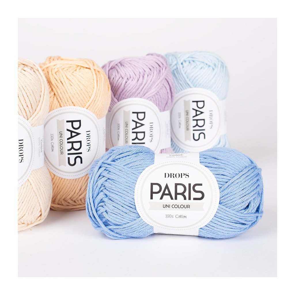 DROPS Paris je nedráždivá, měkká, odolná příze s jemně rustikálním vzhledem, z níž se dobře plete i háčkuje, což zejména ocení všichni začátečníci. Je to materiál velmi vhodný pro výrobu bytových doplňků, jako jsou chňapky, žínky, ručníky i bryndáky. Skvělá volba pro lidi s citlivou pokožkou i ekzematiky.