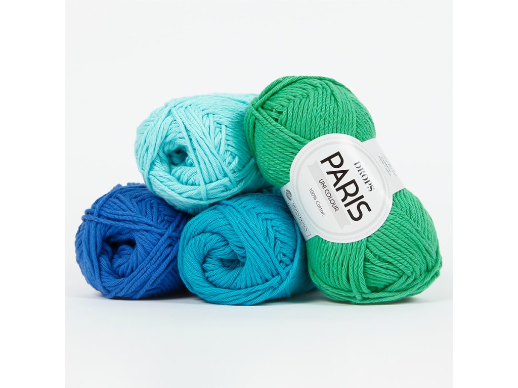 DROPS Paris je nedráždivá, měkká, odolná příze s jemně rustikálním vzhledem, z níž se dobře plete i háčkuje, což zejména ocení všichni začátečníci. Je to materiál velmi vhodný pro výrobu bytových doplňků, jako jsou chňapky, žínky, ručníky i bryndáky. Skvělá volba pro lidi s citlivou pokožkou i ekzematiky.