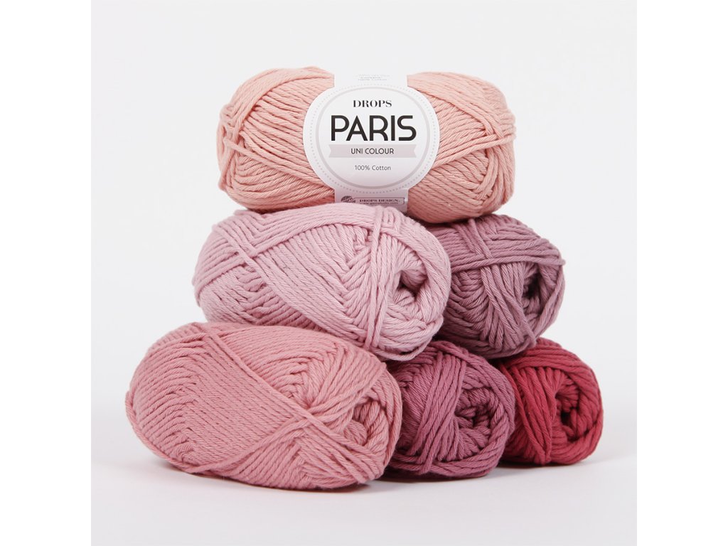 DROPS Paris je nedráždivá, měkká, odolná příze s jemně rustikálním vzhledem, z níž se dobře plete i háčkuje, což zejména ocení všichni začátečníci. Je to materiál velmi vhodný pro výrobu bytových doplňků, jako jsou chňapky, žínky, ručníky i bryndáky. Skvělá volba pro lidi s citlivou pokožkou i ekzematiky.