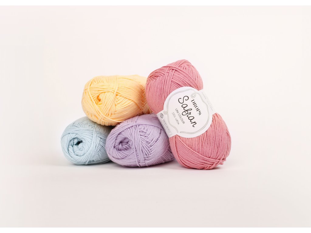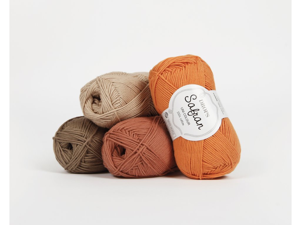 Příze DROPS Safran je spřádána z česané egyptské bavlny, která se vyznačuje obzvláště dlouhými vlákny. Samotné vlákno příze tak tvoří spousta bavlněných vláken stáčených dohromady nejprve v párech a poté opět ve větších svazcích. Takový způsob zajistí přízi i výrobkům z ní výjimečnou odolnost a vzhled.