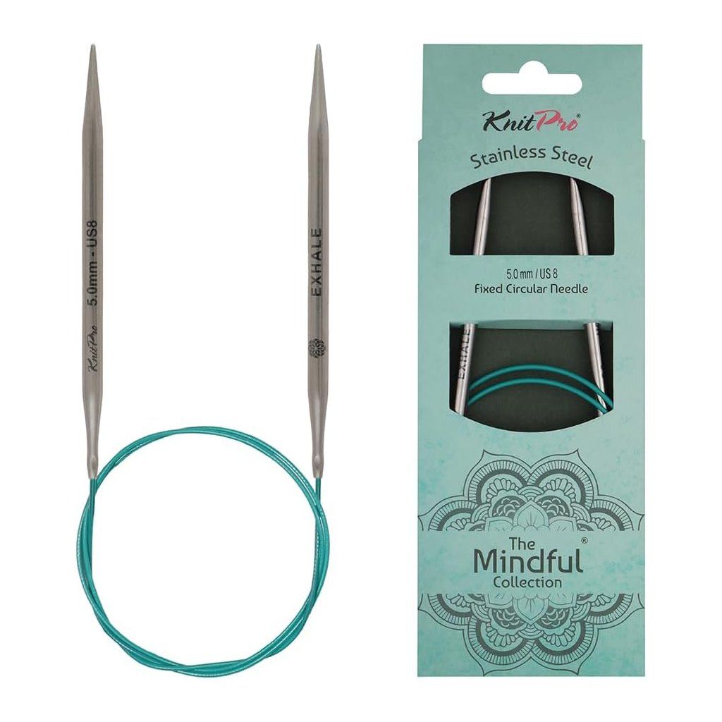 Pevné kruhové jehlice KnitPro Mindful zaujmou na první pohled svým elegantním designem v uklidňujících modrozelených tónech. Jsou vyrobeny z prvotřídní nerezové oceli, která zajišťuje dokonale hladký skluz příze a mimořádnou odolnost pro pletení bez únavy rukou. Tento materiál je navíc zcela bez obsahu niklu, takže je šetrný k pokožce i životnímu prostředí.