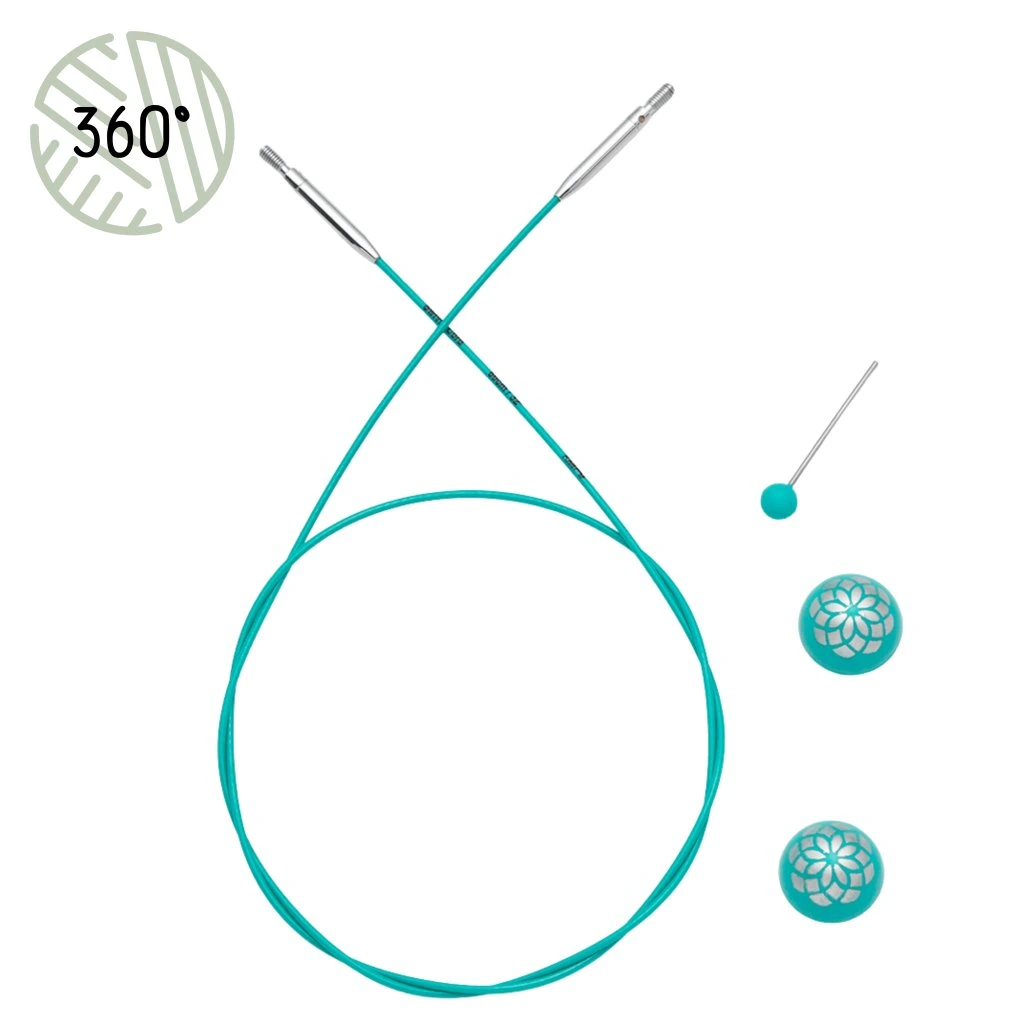 Elegantní modrozelený design s květinovými detaily navozuje uklidňující atmosféru a zpříjemňuje každý projekt. Součástí balení jsou koncovky i klíček pro snadné utažení jehlic. Lanka jsou dostupná v délkách od 20 do 126 cm (bez jehlic) a jsou ideální pro všechny typy pletených projektů – od malých doplňků až po větší úplety.