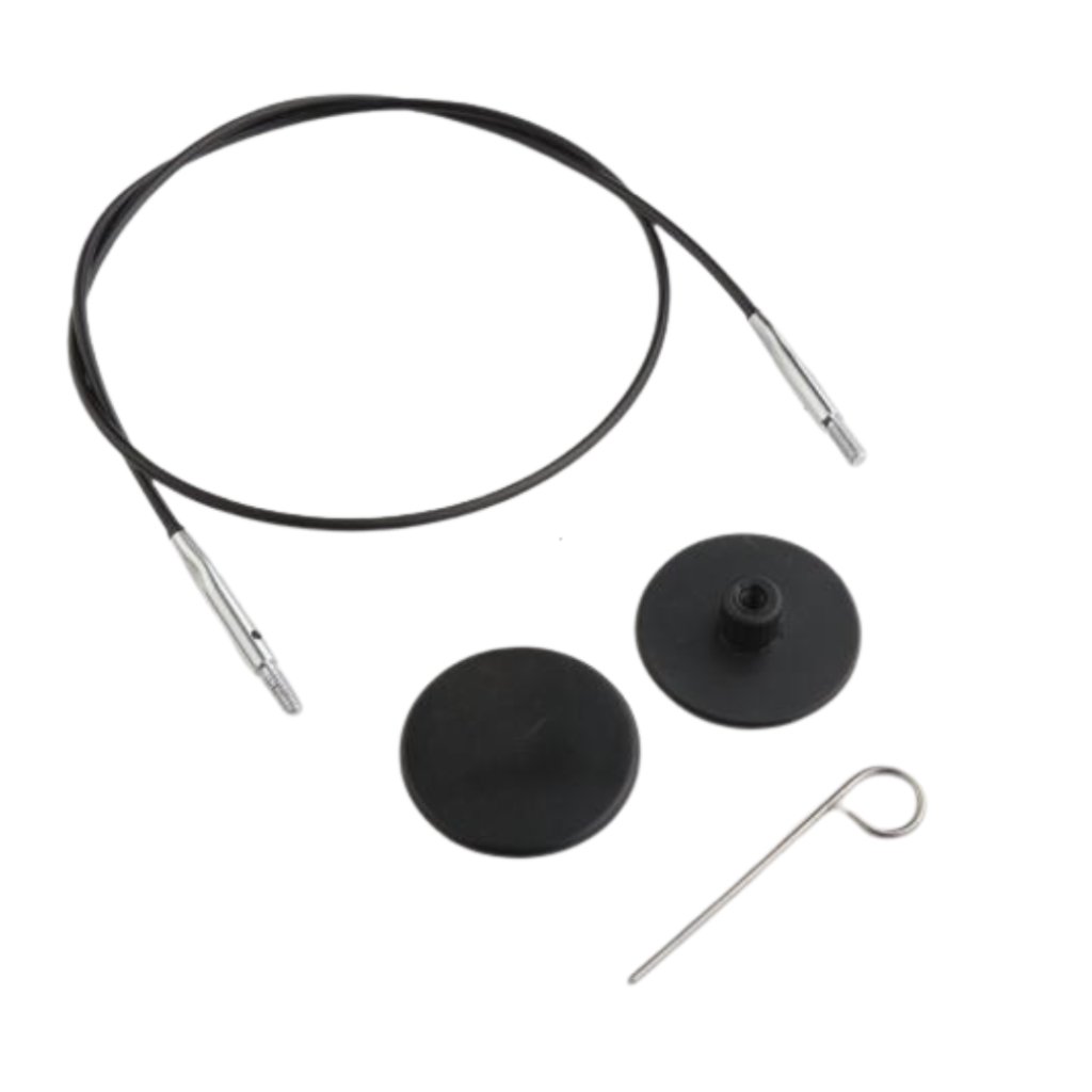K dispozici jsou délky od 20 cm do 126 cm (délka bez jehlic). Lanko je kompatibilní se všemi výměnnými jehlicemi KnitPro a háčky pro afghánské či tuniské háčkování. Součástí balení jsou koncovky a špendlík pro utažení jehlic.