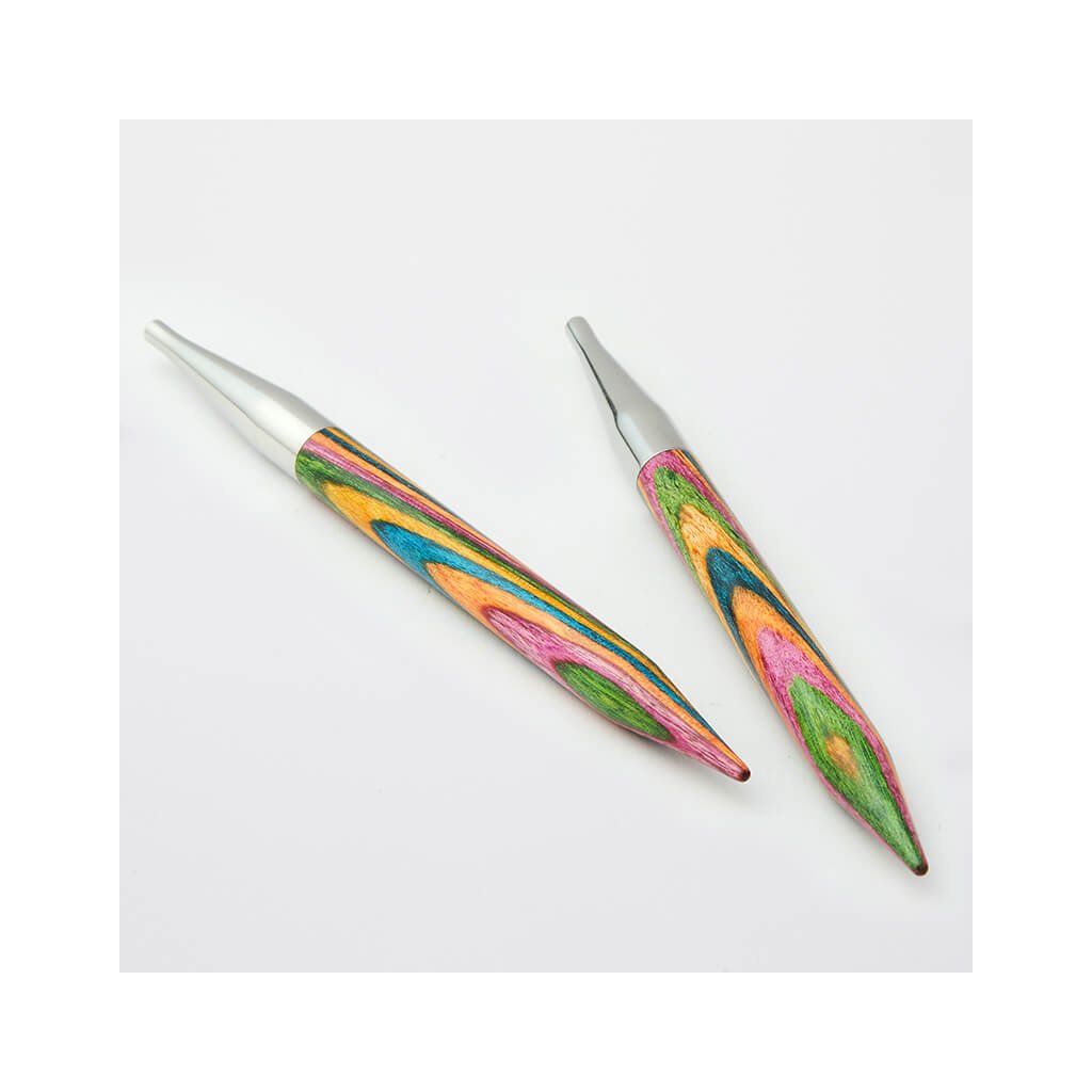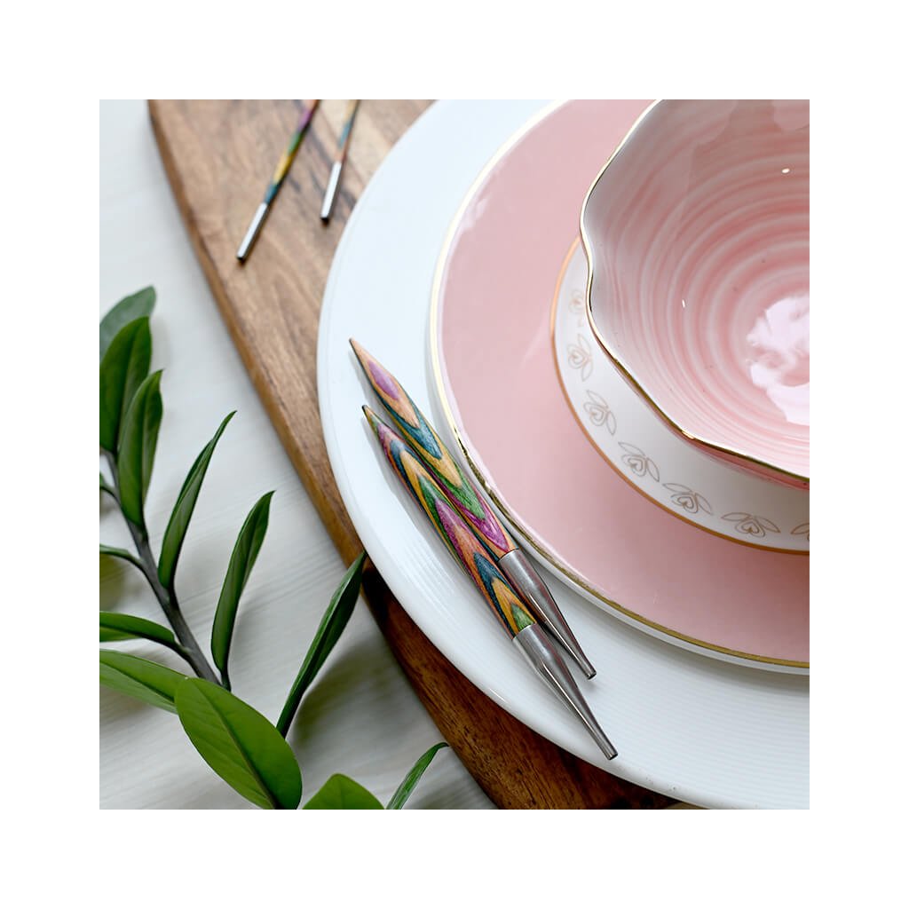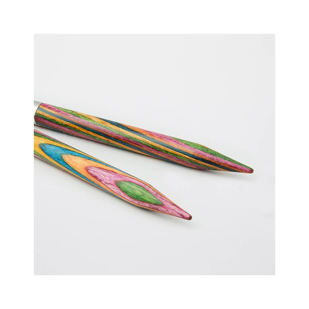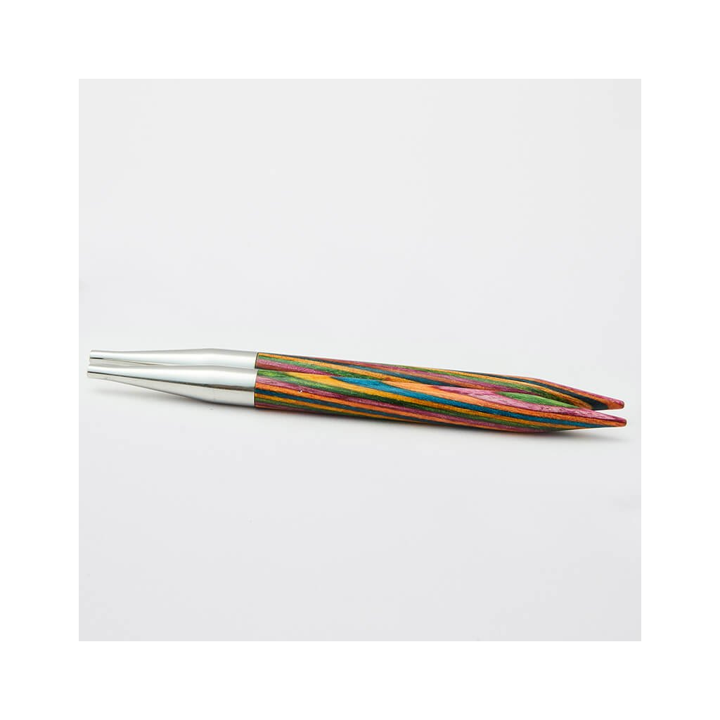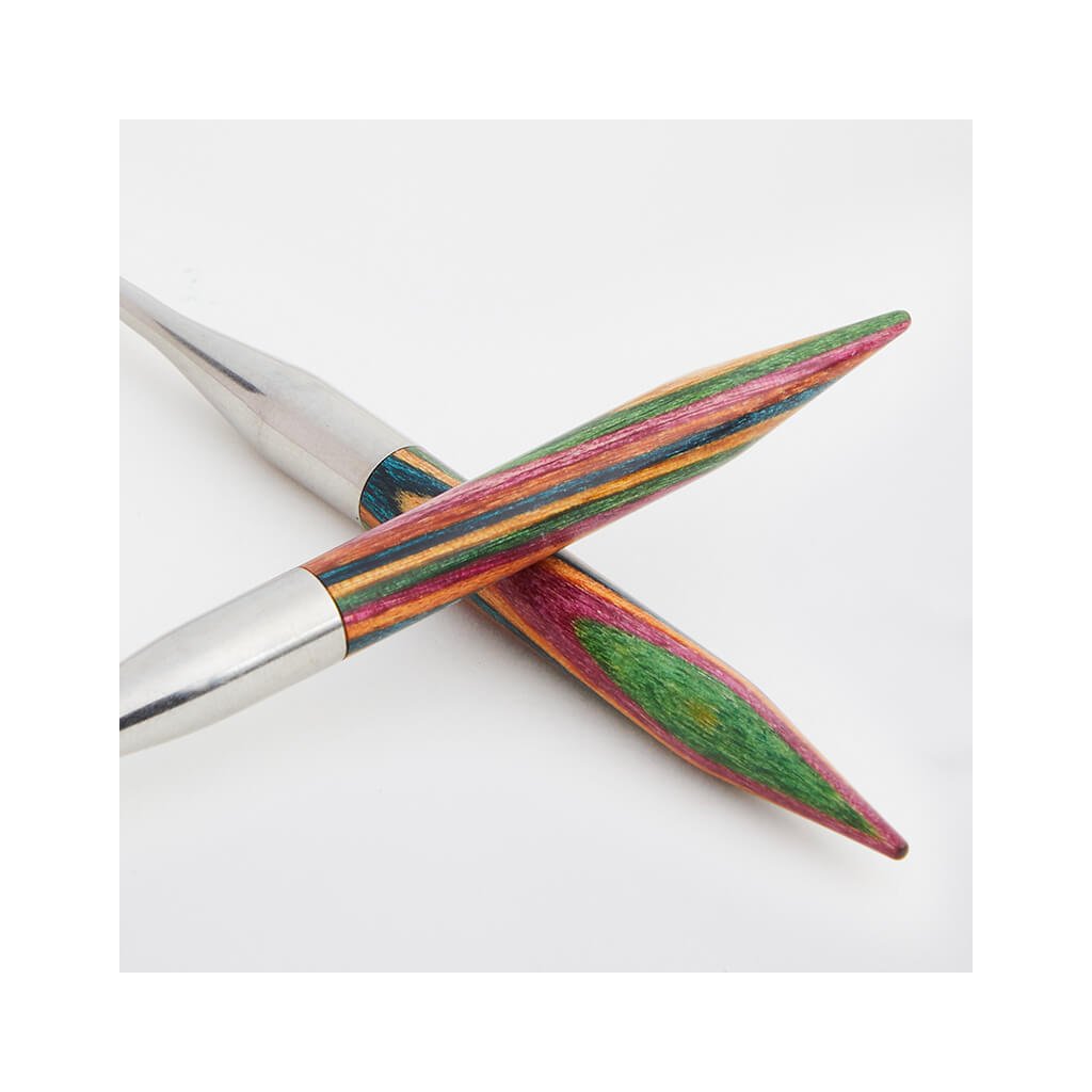 KnitPro Symfonie vyměnitelné jehlice 10 cm jsou skvělou volbou pro všechny, kdo dávají přednost přírodním materiálům a pohodlí při pletení. Jsou vyrobeny z odolného březového dřeva s typickým vícebarevným vzorem Symfonie, leštěného do hladka pro příjemný dotek i plynulý skluz příze.