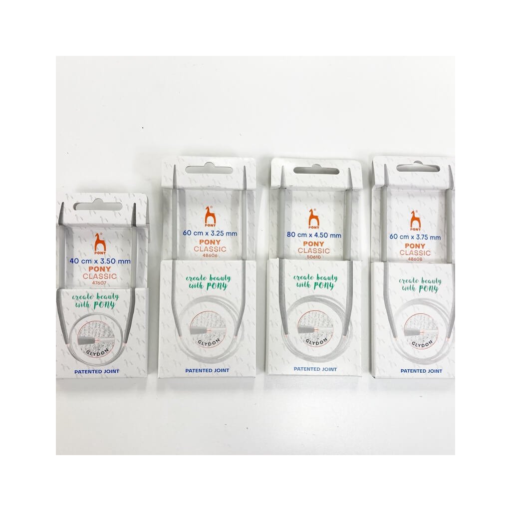 Kruhové jehlice PONY Classic v typické elegantní jasně šedé barvě jsou ideální pro každý pletený projekt a zůstávají nadčasové i s měnícími se trendy. Jsou neuvěřitelně lehké a snadno ovladatelné, vyrobené z hladkého anodizovaného hliníku, který je odolný proti korozi. U větších velikostí jsou jehlice vyrobeny z kvalitního ABS plastu, což zajišťuje jejich pohodlné držení a dlouhou životnost.