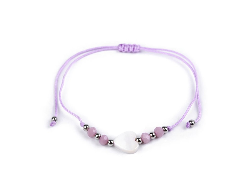 perleťové srdíčko (1 × 1 cm), doplněné broušenými a kovovými korálky