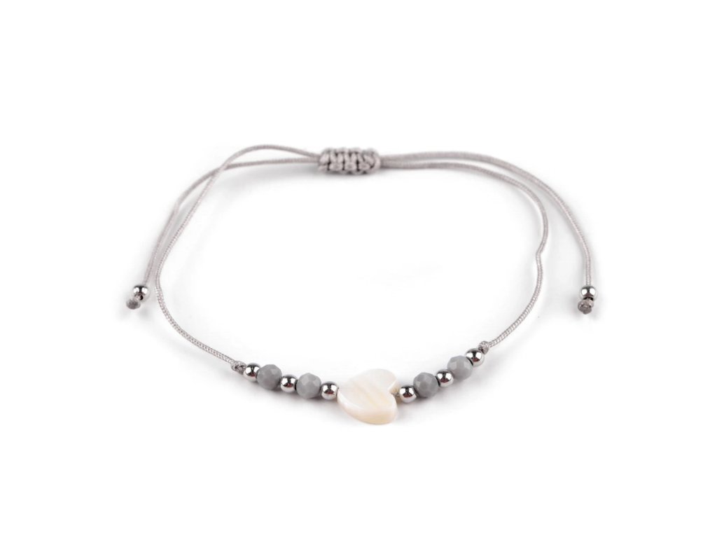 perleťové srdíčko (1 × 1 cm), doplněné broušenými a kovovými korálky