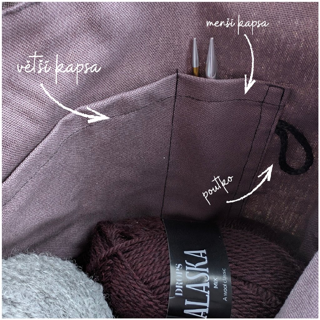 - Kapsy: 1 větší + 1 úzká (na jehlice/háčky)