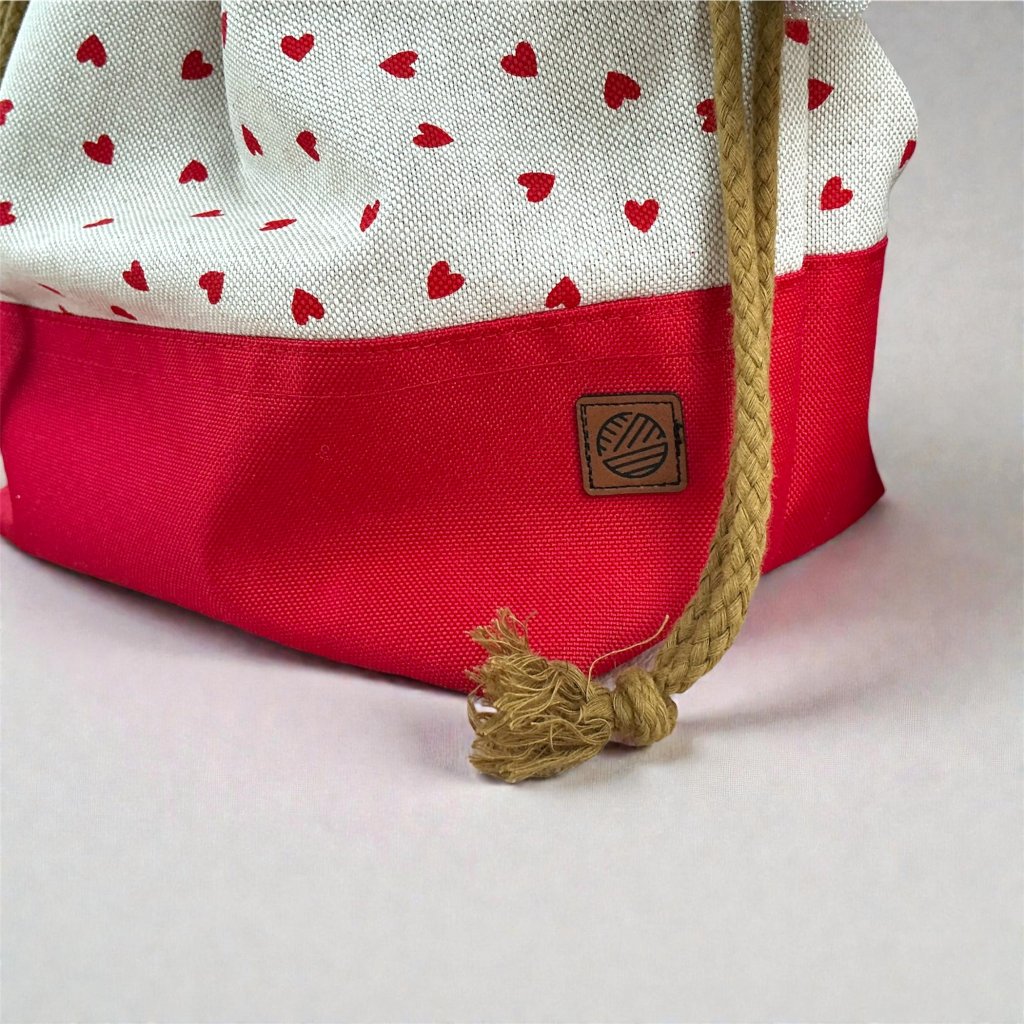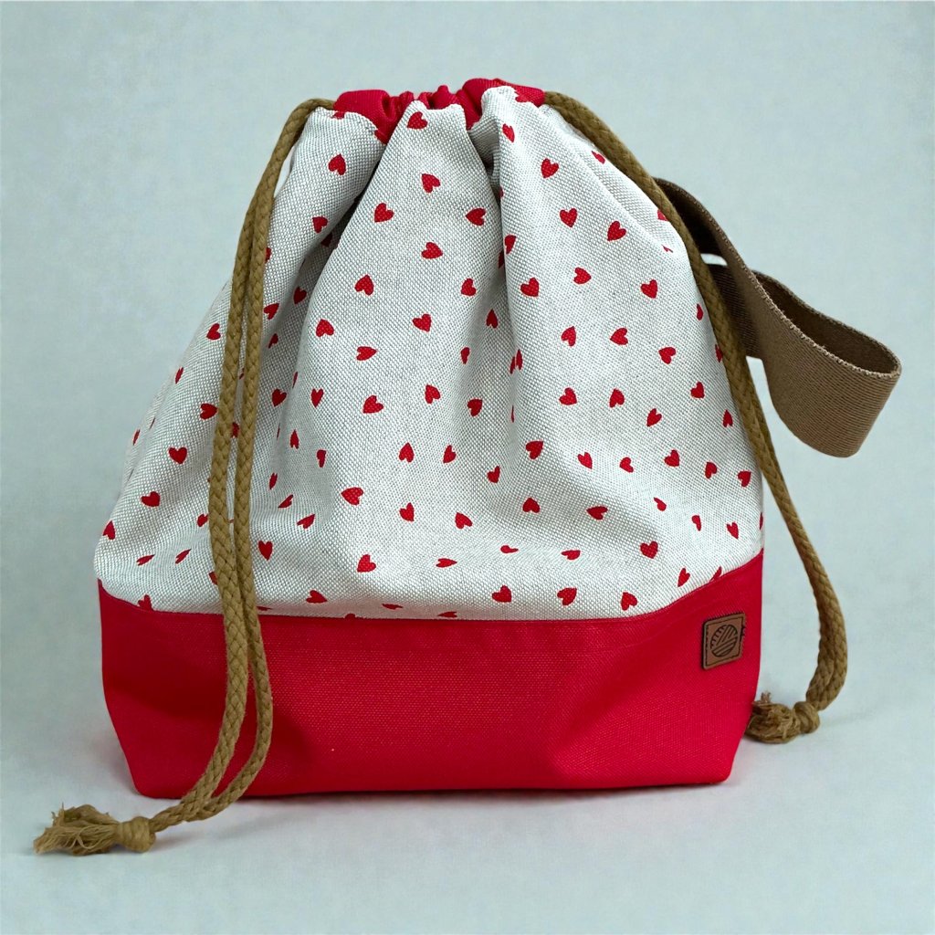 Projektová taška Klubkovka – srdíčka s hnědou