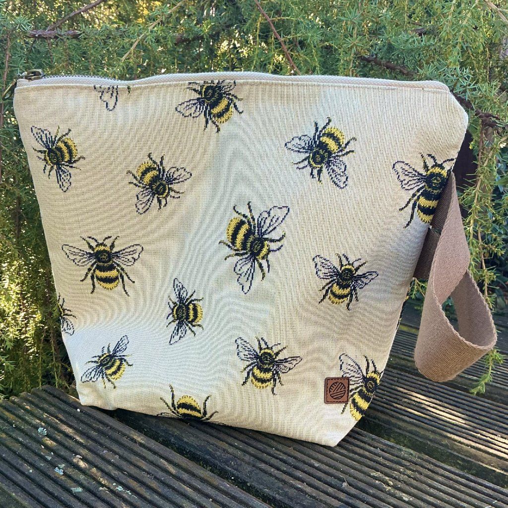 Ručně šitá projektová taška Klubkovka, vyrobená v malebném kraji Podhostýnska s bavlněnou podšívkou, dvěma kapsami, poutkem na značkovače a širokým popruhem na zápěstí. Model ZIP má zabírání na zip a je ušitý z odolné gobelín látky, která krásně drží tvar.