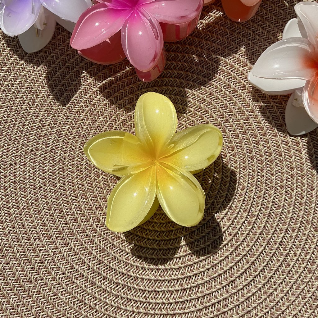 Přeneste se na slunné pláže Havaje s tímto nádherným skřipcem ve tvaru plumerie – symbolu něhy, klidu a tropické krásy. Díky svému jemnému květinovému tvaru a lesklému povrchu se hodí pro každodenní nošení i jako doplněk k letním outfitům.