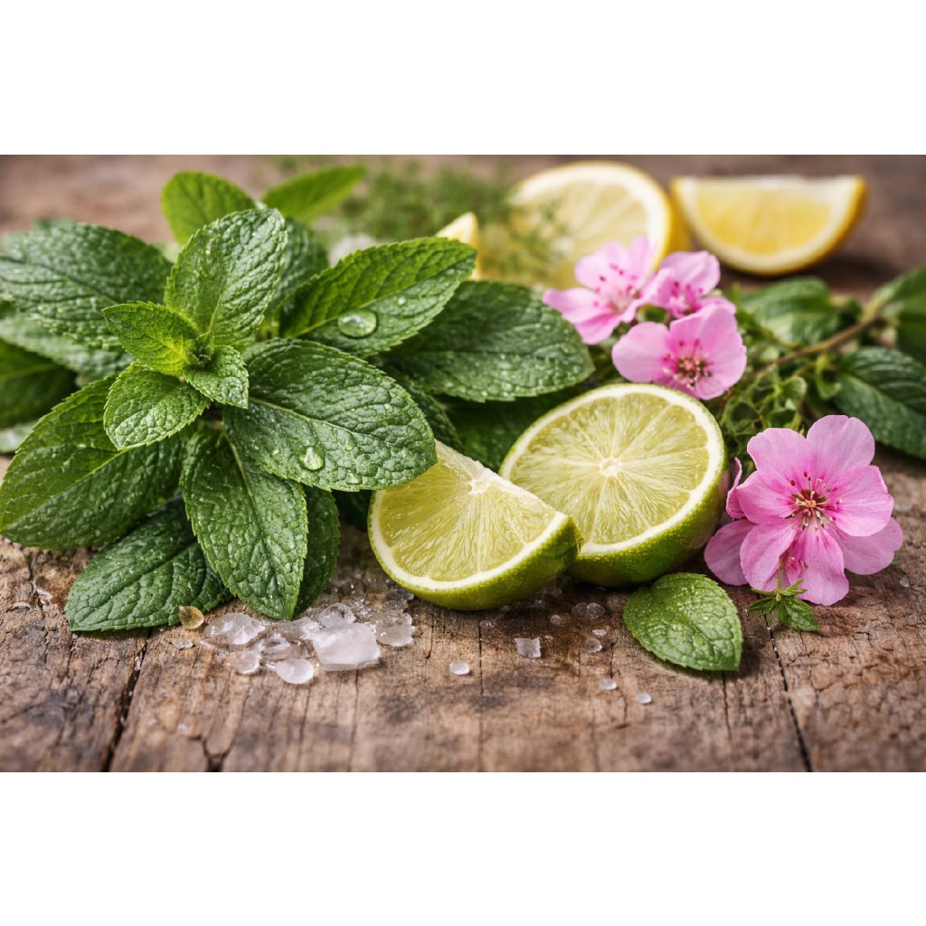 - Wild Mint – máta s citrusovými tóny a pelargonií