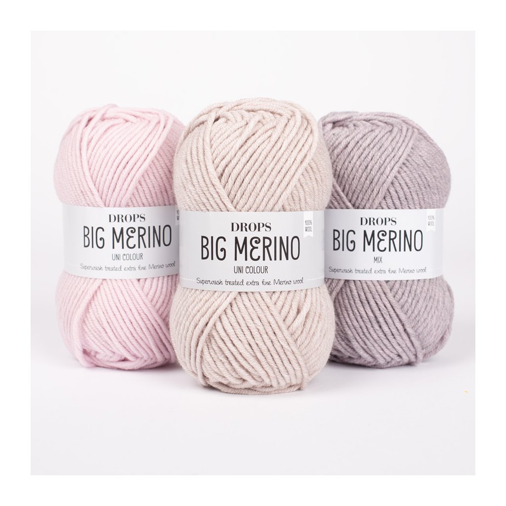Příze DROPS Big Merino je skána z jemných vláken 100% merino vlny, což jí dodává výjimečnou pružnost. Tato příze vyniká svou jemností, je objemná a vysoce pružná, úplety z ní jsou úhledné, kresba ok pravidelná. Proto jde o materiál ideální zejména na strukturované a plastické vzory nebo copánky.