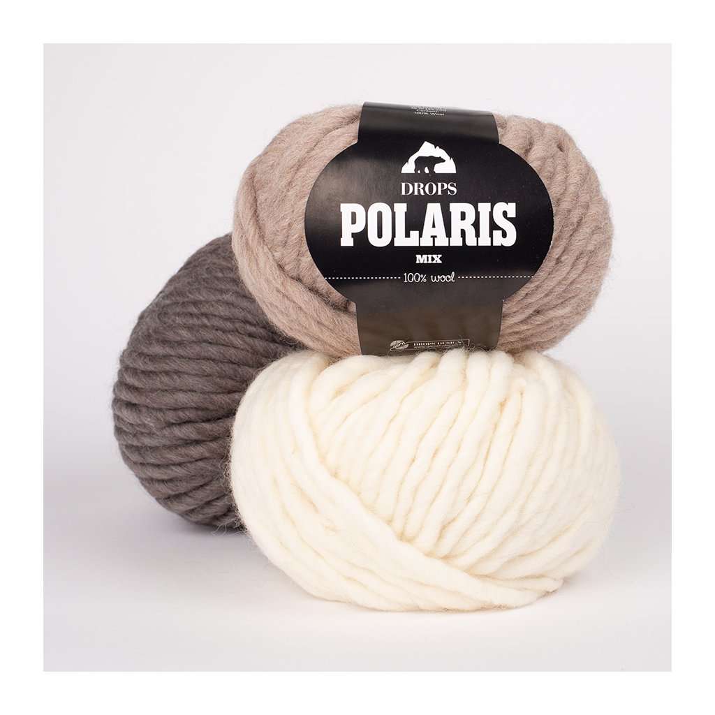 Extra silná jednopramenná vlněná příze – tlustší bratr oblíbené vlny DROPS Snow. I DROPS Polaris je nestáčená příze, vyráběná ze stejně jemné vlny, která neprochází žádnou chemickou úpravou před barvením. Vlna je pouze vymývána a následně projde běžným procesem barvení, díky čemuž zůstávají přirozené vlastnosti vlákna maximálně zachovány, včetně tvarové kvality a struktury.